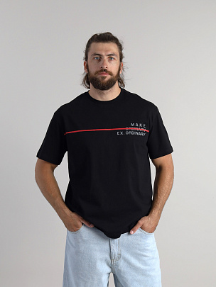 Футболка мужская с коротким рукавом. Вырез горловины круглый, обработан притачной планкой из рибаны с эластаном.